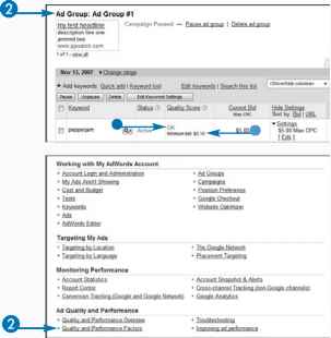 One of the most important things to do when optimizing an online marketing campaign is to test and retest all your quality score optimization strategies. There are limitless tests you can perform on your ad copy, and you can monitor the results using various free tools that Google provides. See Chapter 11 for more information on writing effective ad copy.