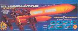 Hornby's packaging for The Eliminator, sporting sci-fi style with lots of exaggerated perspec-