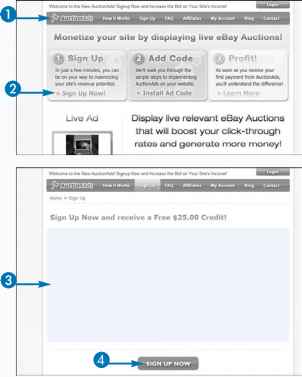 Regardless of the size of your Web site, sending in 3,000 new eBay members or referring over $1 million in total revenue in one pay period is only achieved by a relatively small number of very large affiliates. An example of a very large eBay affiliate is AuctionAds, which receives eBay's top affiliate payouts by allowing subpublishers like you to place the AuctionAds widget on your Web site. The AuctionAds widget requires you to place a short JavaScript code on your Web site that displays live eBay auctions to your visitors based on your site content. AuctionAds pays you directly for any traffic that you send through the widget that results in either a new eBay member sign-up, sale, or both. Because AuctionAds is paid based on eBay's highest commission tier, you can make more money than you would by simply being an eBay affiliate.