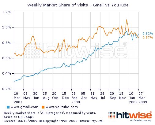 But if a decent number of Twitter’s 6 Million users also use Gmail and are experiencing similar email usage growth then I hypothesis that Twitter is responsible for Gmail’s rise in visitors.