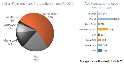 ECommerce in India has grown rapidly across both travel and retail in the last 12 months and has shown an above average growth compared too many categories online. China added over 14 million users to reach 336 million Internet users by the end of July 2012. Russia and India show similar trends in online usage patterns along with similarities in e-commerce and payment types.