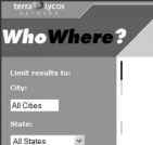 Lycos partners with sister site WhoWhere to provide White Pages searching. When you click the White Pages link (or go directly to www.whowhere .lycos.com) you're taken to the WhoWhere Web site, shown in Figure 5-5. Searching is as simple as entering a first and last name, selecting a city or state, and clicking the Search button. WhoWhere will return a list of matching names, complete with addresses and phone numbers.