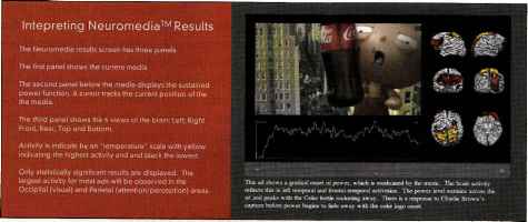 "strong brands trigger activity in parts of the brain associated with self-identification, positive emotions, and rewards." According to one observer, it "turns out the Nike's swoosh is more than just a feel-good brand logo. It actually lights up your brain." A Similarly, when researchers strapped electrode-loaded caps on the noggins of test subjects during last year's Super Bowl, America's championship football game, to measure advertising engagement, they learned that brain activity soared for some ads but lagged for others.30 Here's an example of neuromarketing at work:31