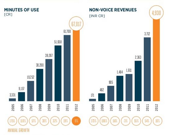 It has also been observed that since mobile is such an integral part of Indians’ life, it is being used for more than just for making a phone call. Phones are being used for making bank transactions, booking tickets, watching movies, accessing the Internet etc. The prices for 2G and 3G data connectivity is among the lowest in the world.