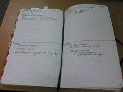 Anyone who knows me knows that I am very rarely without my notebook. I have had a planner of one kind or another since Junior High but they never seemed right. You have to fit all your thinking into their structure. Then a few years ago I started reading all these GTD hacks on blogs. So I started my own Moleskine system that I put together based on some of what I read.