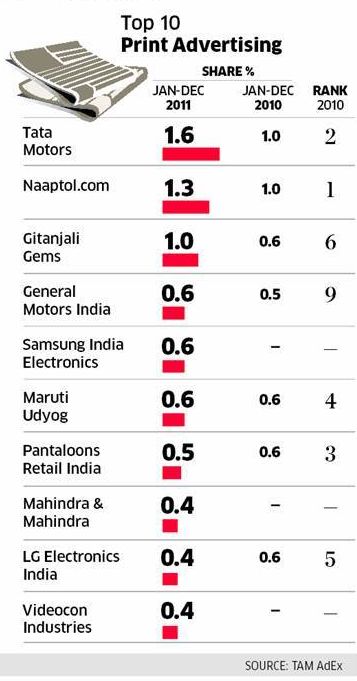 Naaptol.com features in top 3 Print advertisers of India released by Et Tam AdEx for two consecutive years