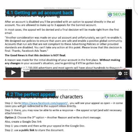 This bonus was created to help guide you on making the best appeals when trying to get back your Facebook ad account. In this bonus, you will find the exact appeal scripts you that the author and his clients and affiliates have used to successfully appeal for and get back their ads and ad accounts. You will use these scripts depending on the particular situation or problem you have and make a successful appeal. The original value of this is $497 where all you have to do is copy and paste these scripts and you are good to go