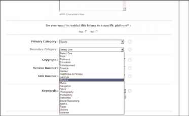- Figure 4.2 The Games category allows you to select up to two subcategories to help direct the buyer to your app.