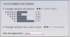 Read the reviews posted on the App Store to gather valuable information on what customers like and don't like about your competitor's apps. Customer reviews are brutally honest with both praise and criticism. The comments will help you gain an understanding of how people perceive the app, its audience, and overall satisfaction. Obviously the more positive reviews than negative (based on the five-star rating) indicates the overall impression of the customer base. A predominantly high number of positive reviews indicates strong acceptance of the app. This also means that the app is resonating with a particular market segment. There will always be a few complainers who give the app a one-star rating, but if the majority of reviews are single star, then it is reason for concern. An example of an app receiving a good review is shown in Figure 4.5. The next example shows an app with a high number of negative reviews, displayed in Figure 4.6.