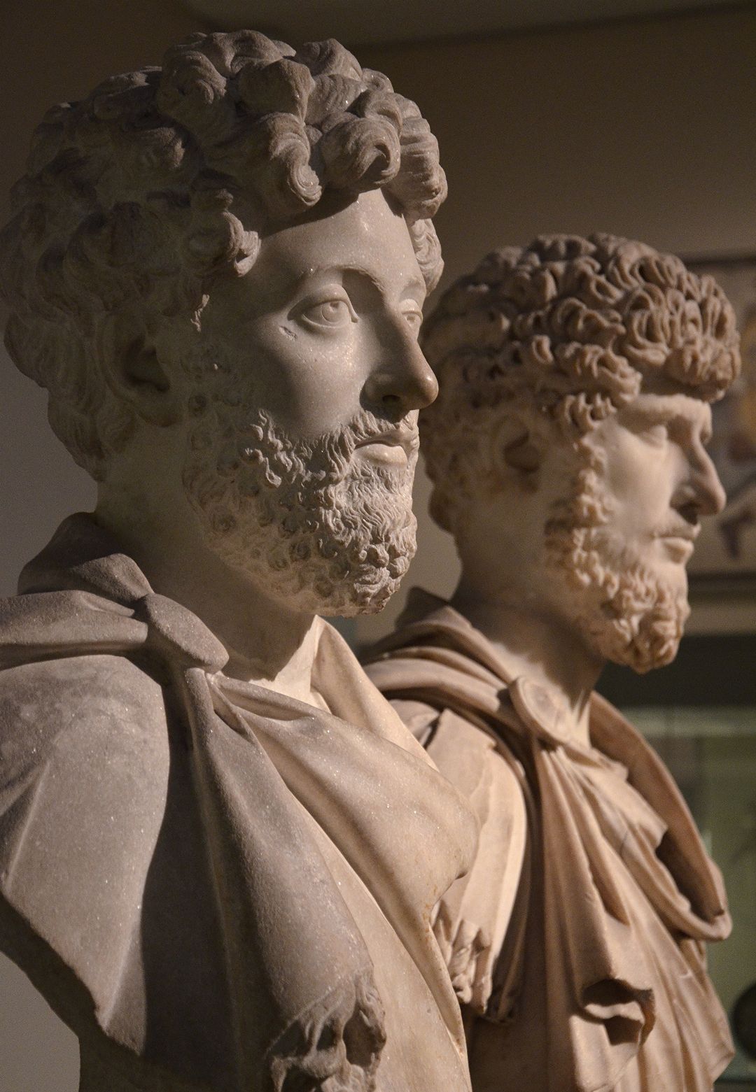 Co-emperors Marcus Aurelius and Lucius Verus. Marcus was unwittingly one of the great popularisers of Stoicism, a philosophy that has ancient Greek origins. His personal journals, saved for posterity and eventually published, are full of Stoic ideas. The fact that Marcus drew so much strength from Stoicism as both a military and state leader demonstrates the power of philosophy. (source: Wikipedia)