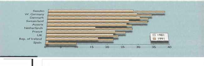Sweden, for example, one-person households now account for over 40 per cent of all homes. Between 1981 and 1991, there has been an upward trend towards single-person households (see Figure 4.7). In the United States, figures are comparable, with estimates putting the number at 47 per cent by the year 2000. These groups have their own special needs. For example, they need smaller apartments, Inexpensive and smaller appliances, furniture and furnishings, and food that is packaged in smaller sizes.4