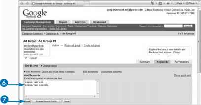 6 Type the keywords you want to add to the account. These keywords will trigger your ad.