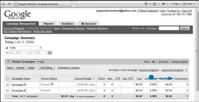 Loofeng for your conversion data'' Find it on the Campaign Summary page, where two data columns have been added for each AdWwds campaign-