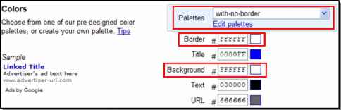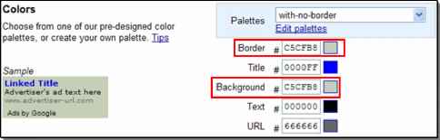 I then head back to Google AdSense and replace the Border and Background # codes, which are currently FFFFFF, to the one I just collected from the ez-WebBuilder.
