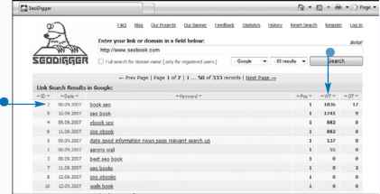 Analyze Your Competition with Seodigger site-wide search function allows you to search for the top 20 rankings for every single page of a Web site, as opposed to just searching the home page rankings. Registration is free and only requires verifying your e-mail address. In addition to organic ranking, Seodigger provides you with important information on keyword popularity. Observing the keyword popularity of your competitors' organic rankings is important because it can be used to determine the relative amount of traffic your competitor is receiving for a particular keyword placement. The Seodigger keyword popularity function also provides a rough idea for how much traffic you can possibly gain by increasing your rankings for your keywords. For example, if your site is ranked between spots 7 and 10 for two separate keywords, but one receives double the monthly searches, you stand to gain the most from optimizing further for the higher volume keyword.