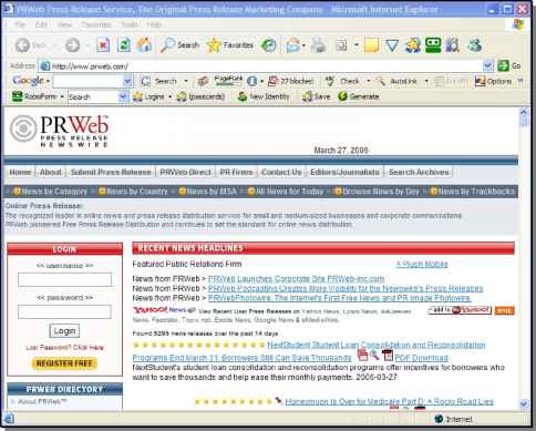 There are samples of these on the PRWeb site, - as well as instructions for distributing your press release. It is important you review these, as writing press releases and distributing them via the Net will provide you with huge returns.