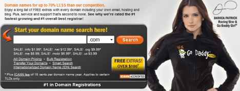 The first step is to go to godaddy.com and just key in your main keywords into the domain name search bar: