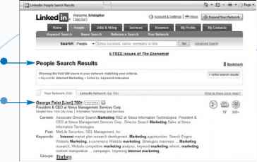 The LinkedIn service allows you to quickly build your contact list by searching for LinkedIn members you know from your current and past place of employment or from your past educational institutions. Moreover, as part of the sign-up process, you have the opportunity to build a profile page that others can see. Your profile page includes basic information about you, as well as more specific information about your present and past educational and business activities.