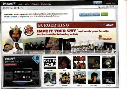 Still, most of the niche sites offer unique campaign opportunities to brands. Sites like imeem.com—a social network where "fans and artists discover new music, videos, and photos, and share their tastes with friends"—are carving out their niches and actively soliciting advertising dollars. "We tend to skew younger and edgier," with a demographic of 13-24, says imeem's chief marketer. An ever-growing niche of more than 100 million users interact with imeem, helping it to attract big-name sponsors such as Burger King, Scion, Nokia, and T-Mobile, which sponsor special features and events. For example, one promotion involved artist J. Holiday texting his thoughts on tour to imeem.com members through his T-Mobile sidekick cell phone.