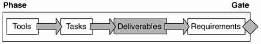 Columns 1 and 6 align the gate deliverable to a gate requirement. Each deliverable is justified as it contributes to meeting a gate requirement. (Never produce a deliverable if you can't justify its ability to fulfill a gate requirement.)