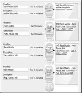 - Figure 5.2 Google AdWords mobile text ad options.