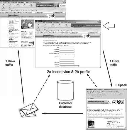 Bringing together all the concepts covered in this chapter, I now present an overall process model for online relationship building (Figure 2.9) which shows how the web site, e-mail marketing, direct mail and other forms of marketing communications can fit together.