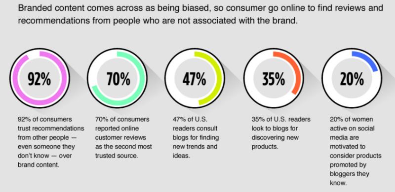 Why should you be interested in influencer marketing? Because the influencer’s unique experience of your brand, phrased in his/her own way is considered more trustworthy than your own words. The Shelf made a great infographic covering research on this topic already a year ago, concluding that 92% of consumers trust recommendations from other people over brand content.