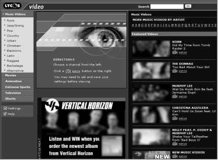 - Figure 5-8: Watch hot videos online at Lycos Music.