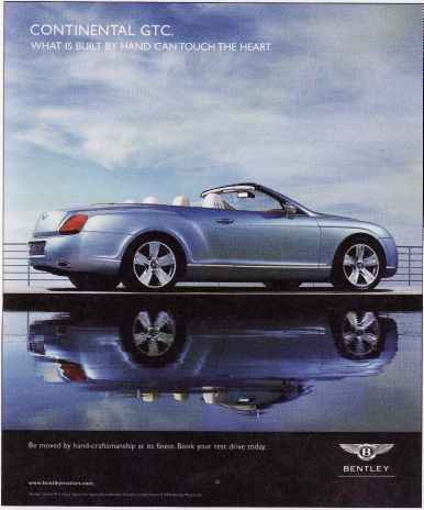 Stay with me here, because I'm about to [tell you why] a certain automobile costing $175,000 is not actually expensive, but is in fact a tremendous value. Every Bentley GT is built by hand, an Old World bit of automaking requiring 160 hours per vehicle. Craftsmen spend 18 hours simply stitching the perfectly joined leather of the GT's steering wheel, almost as long as it takes to assemble an entire VW Golf. The results are impressive: Dash and doors are mirrored with walnut veneer, floor pedals are carved from aluminum, window and seat toggles are cut from actual metal rather than plastic, and every air vent is perfectly chromed____The sum of all this is a fitted cabin that approximates that of a $300,000 vehicle, matched to an engine the equal of a $200,000 automobile, within a car that has brilliantly incorporated ... technological sophistication. As I said, the GT is a bargain. [Just ask anyone on the lengthy waiting list.] The waiting time to bring home your very own GT is currently half a year.