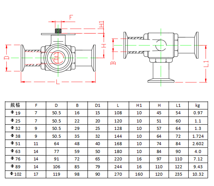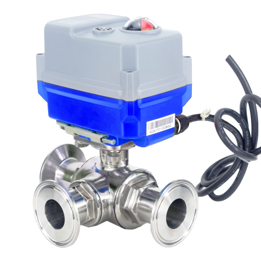 卫生级电动三通卡盘球阀