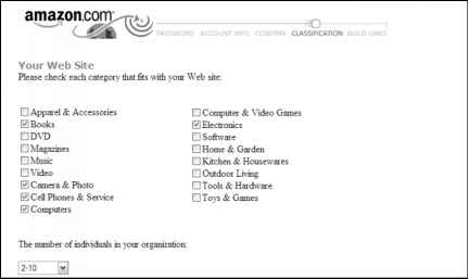 7. Check each category that your Web site falls into, as shown in Figure 14-6.