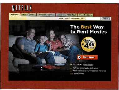 But now, thanks to Netflix, that distribution model is changing quickly. In the late 1990s, Netflix pioneered a new way to rent movies—via the Web and direct mail. With Netflix, you pay a monthly subscription fee and create a movie wish list online. Netflix mails you a set number of DVDs from your list at a given time, which you can keep for as long as you like. As you return the DVDs in prepaid return envelopes, Netflix automatically sends you new ones from your list.