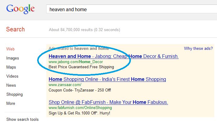 Iamwire tried to contact Tushar Ahluwalia, CEO, Heaven & Home who refused to share much detail but clearly said, “I can only tell you at this point that H&H will be merging with Fab Furnish. Unfortunately, that’s the only information I can give you.” He also refused to comment about the reason of such a decision about the company and it remained unclear what sort of merger will it be? However the traffic for Adwords ‘Heaven and Home’ is being promoted to Jabong through Google SEM.