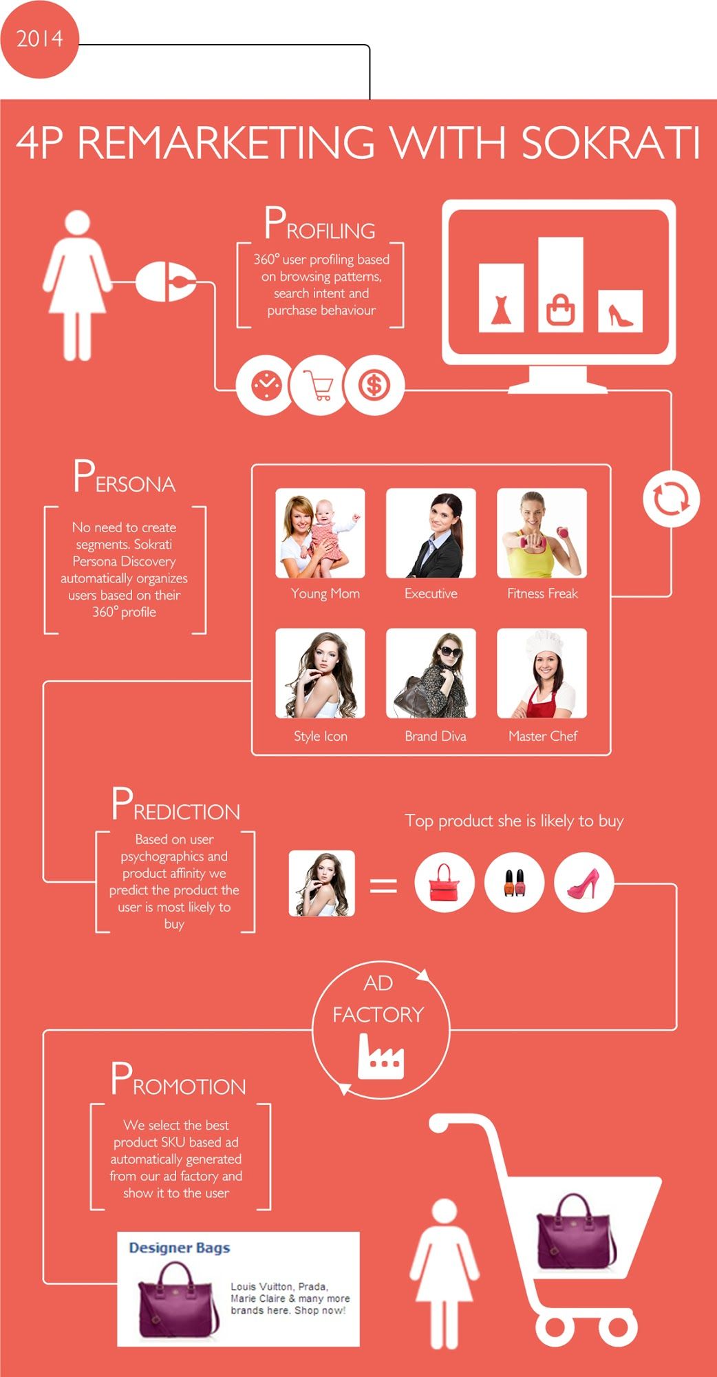 Sokrati Product Affinity Predictor then recommends the right product for that persona, in this whole process no manual creation of segments is required, nor is the user stuck seeing ads for the last product he/she browsed on the advertiser’s website.