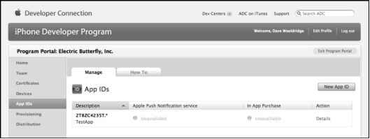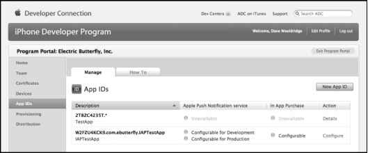 - Figure 7-26. An application-specific App ID can be configured for testing Push Notifications and In-App Purchase.