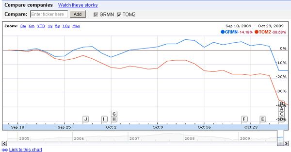 This is what happened to TomTom and Garmin stock prices when Google announced Maps Navigation. I suspect their stock prices will come back *some* but not to their previous levels. A new bar has been set and it’s very, very low. There was a certain amount of value in those companies because there existed a barrier to entry: satellites, relatively expensive hardware, distributors, supply chains, etc.