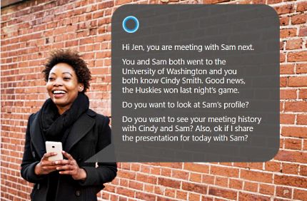For instance, a look at the below image released by Microsoft can reveal the additional features and capabilities Cortana would have in the near future. Not only would it get easier to find out more about a client you are going to have meeting with and common things you share, the interconnected network would bring the functionalities of Office 365 along with machine intelligence to suggest decisions based on predictive analysis.