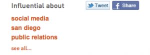 I also believe brands should be able to tap into the specifics of a person’s Klout score. We social media pros always discuss what’s important in social measurement and it’s not just one number of followers, fans, subscribers – it goes deeper than that and for Klout, I’d recommend my clients look at rewarding only Klout users that are influential in few topics (shown in the “influential about” part of Klout profile).